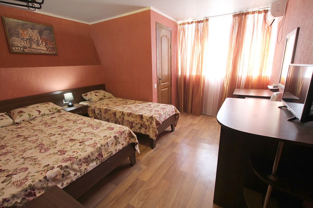 номера со всеми удобствами, с wi-fi, спутниковым ТВ, с общей кухней на первом этаже. Коттедж расположен в тихом, уютном, закрытом дворике, в 100 м от пляжа.